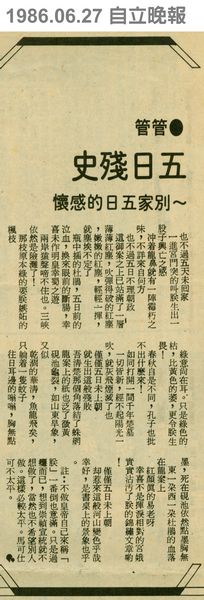 | 標題: | 五日殘史~別家五日的感懷 |