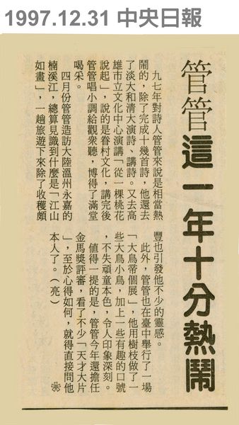 | 標題: | 管管這一年十分熱鬧 |