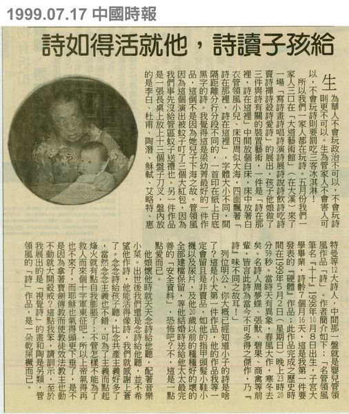 | 標題: | 給孩子讀詩,他就活得如詩 |