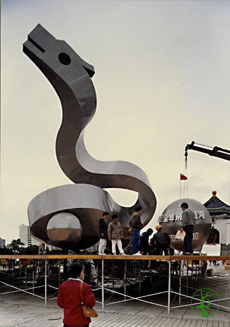 | 摘要: | 工人準備接合〔飛龍在天〕作品「現代飛龍」所盤據的底部圓形球。 |