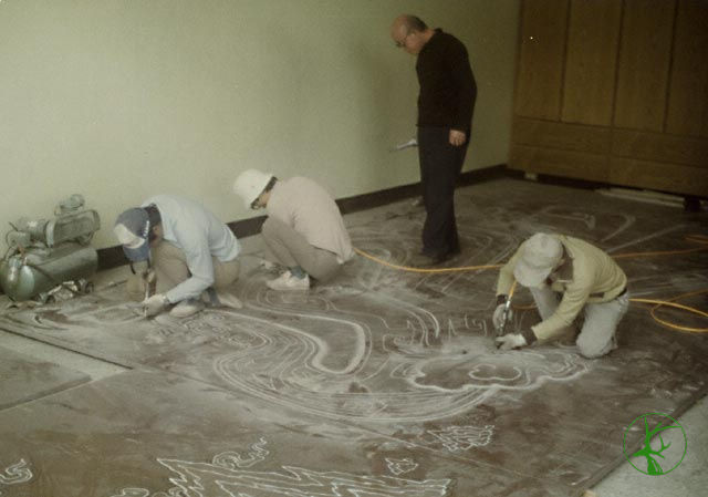 | 摘要: | 〔鳳凰于飛〕為紅花崗石片金線雕刻,高三米、寬五‧五米,是在印度紅花崗石上以殷商古紋鳳格作金石線雕,並且經由深淺不同的線條呈現出鳳凰、山岳、太陽、雲彩的遠近層次與立體感,預計設置於台北市國賓飯店正廳。圖為楊英風在製作現場指導工人雕刻〔鳳凰于飛〕。 |