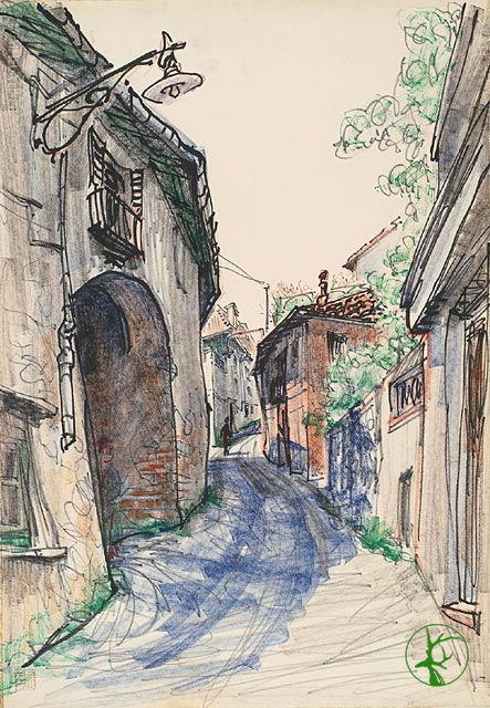 | 摘要: | 本作品取景自杜林的卡夫瑞朵(Cavoretto),杜林(Torino)是皮埃蒙特(Piemonte)的省會,位於義大利最西北端,1861~1865年曾是義大利首都,幾個世紀以來一直是皇家貴族的城市,城市中現今仍保存著中古世紀的城牆、宮殿的大門及城樓遺跡,由於鄰近瑞士與法國,因此文化也深受影響。作者以彩色簽字筆作畫,墨水幾乎用盡的簽字筆將鮮麗的色彩轉換為像蠟筆一般的溫潤質感,並保留了簽字筆乾淨俐落的特性,使畫面在繽紛亮麗的色彩中仍然透亮清新,畫面中的道路隨著密集的藍色S型曲線產生流動的效果,引領觀者隨之進入畫中尋幽探訪義大利的小鎮風情。 |
